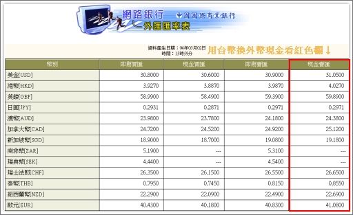 延伸閱讀:[情報] 兌換外幣現鈔資訊整理(含臺銀線上結匯) 2014.9更新