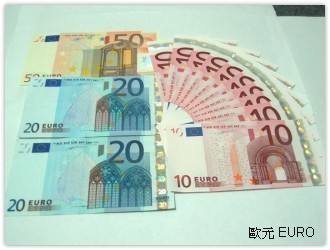 打算要今年暑假去歐洲玩時使用的歐元現金,前前後後好像換了大概七百多,這只是一部份而已,歐元紙鈔還頗有質感的,圖案也非常有特色,美觀程度僅次於新版日幣